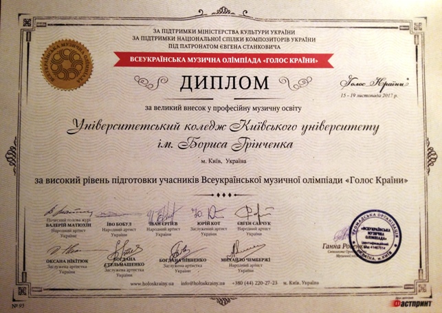 Вітаємо лауреатів XII Всеукраїнської музичної олімпіади «Голос Країни»