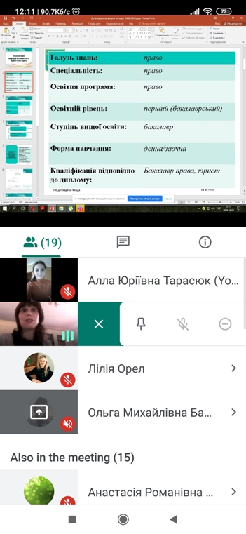 Зустріч студентів 4 курсу спеціальності «Право» з викладачами кафедри публічного та приватного права