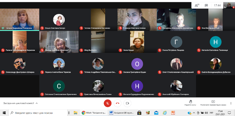 Засідання циклової комісії музики і хореографії (25.01.2021)