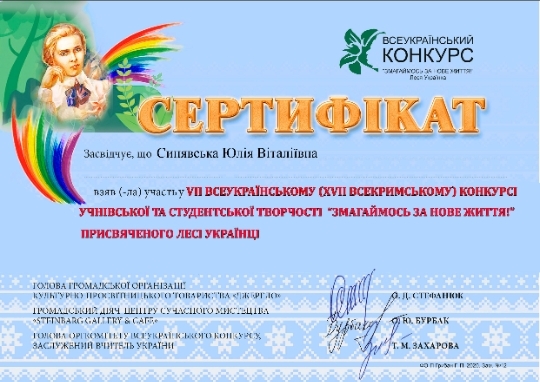 Участь у Всеукраїнському (ХVІІ Всекримському) фестивалі-конкурсі учнівської та студентської творчості імені Марії Фішер-Слиж «Змагаймось за нове життя!», присвяченому Лесі Українці