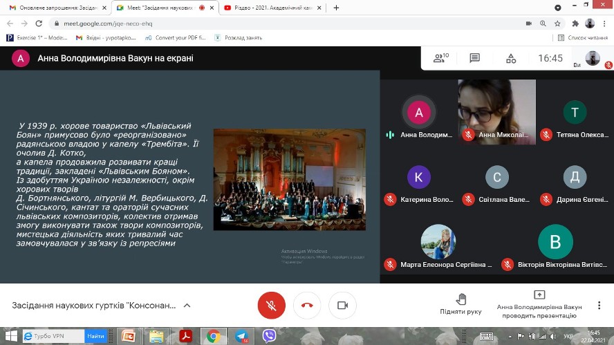 Спільне засідання наукових гуртків "Консонанс" та "Belcanto" на тему "Хорове виконавство на сучасному етапі"