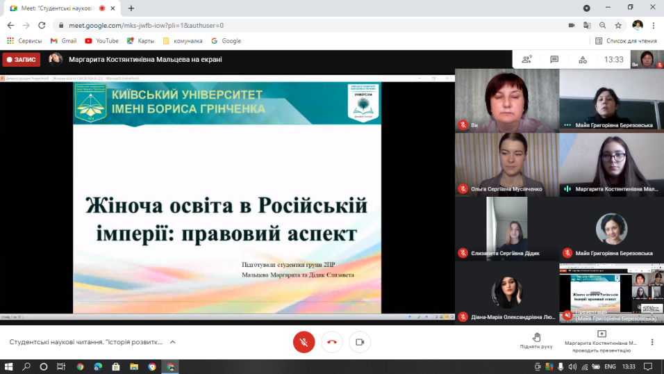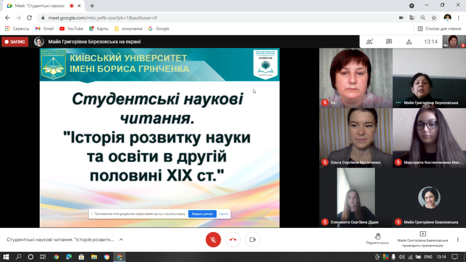 Студентські наукові читання "Історія розвитку освіти та науки в другій пол.19 ст."