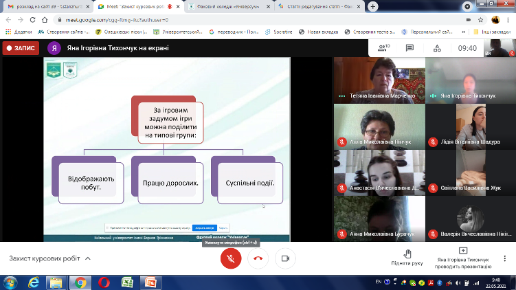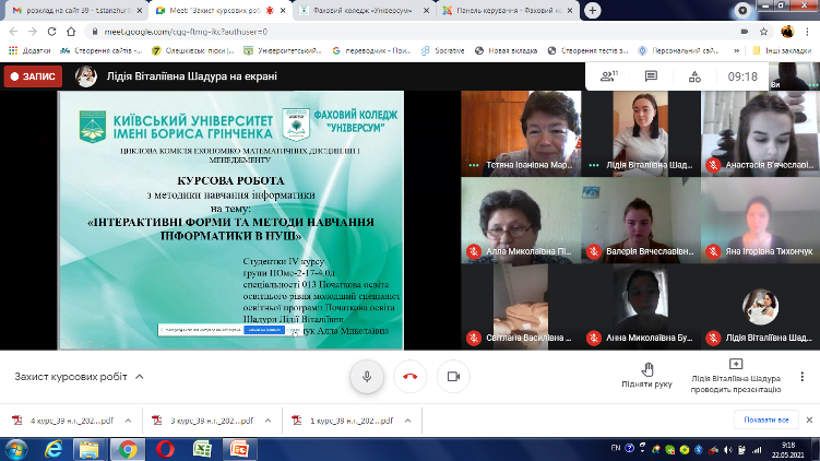 Захист курсових робіт студентами спеціальності "Початкова освіта" з методики навчання інформатики