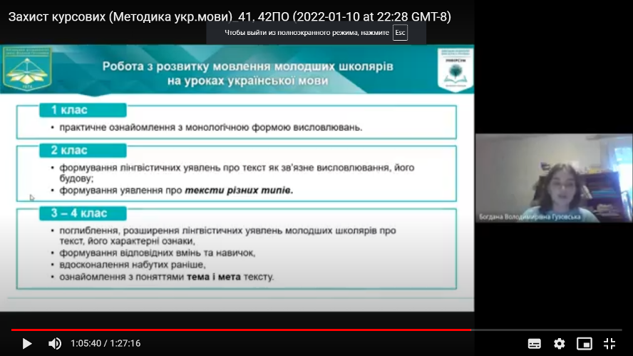 Захист курсових робіт спеціальності Початкова освіта