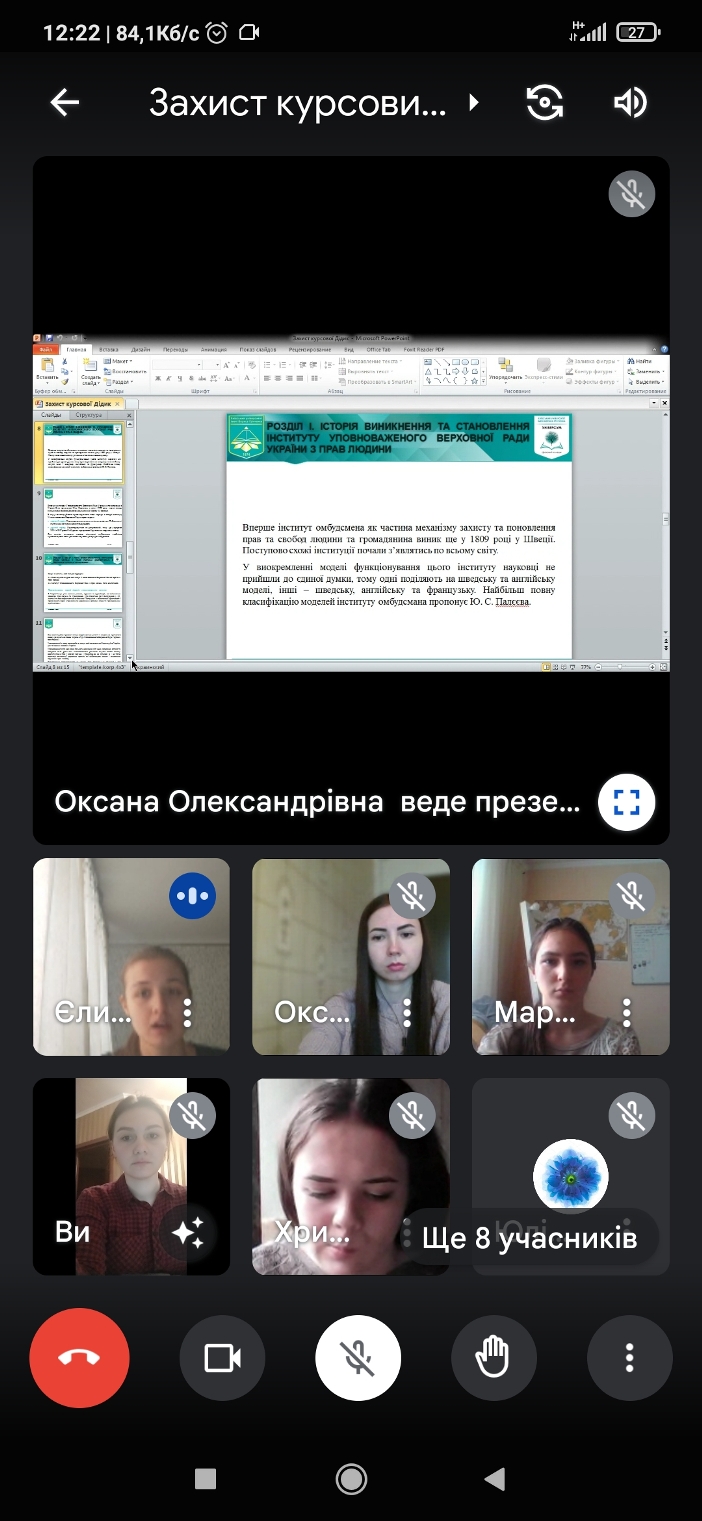 Захист курсових робіт студентів 3 курсу спеціальності 081 Право