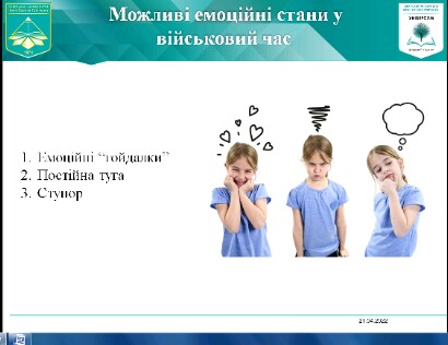 21 квітня 2022 року у Фаховому коледжі «Універсум» Київського університету імені Бориса Грінченка для студентів групи ОВфмб-1-21-4.0д в рамках декади ЦК природничих дисциплін з метою підтримки психологічного здоров’я студентів, відбувся вебінар на тему: «Як допомогти собі у стресовій ситуації під час військового часу?».