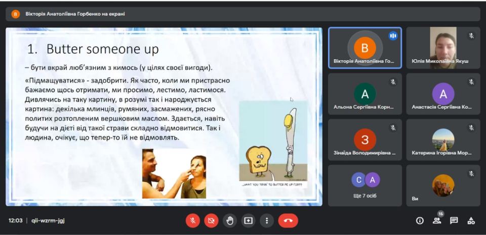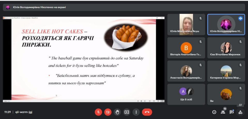 Засідання наукового гуртка "Lingva" на тему " "Смачні" ідіоми англійської мови у переносному значенні та способи їх відтворення українською мовою"