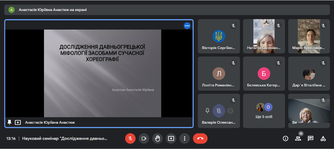 Науковий семінар на тему «Дослідження давньогрецької міфології в сучасній хореографії»
