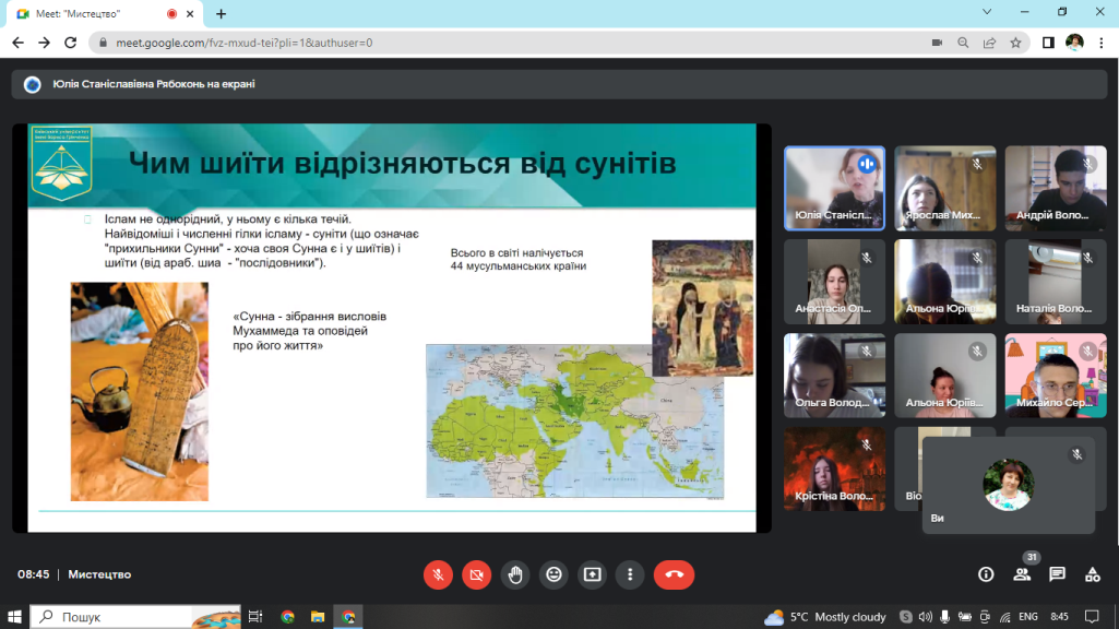 Відкрите заняття з мистецтва на тему: "Мистецтво арабо-мусульманського культурного регіону"