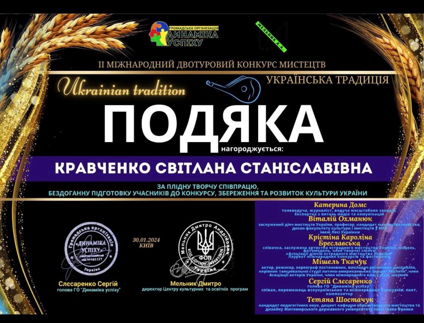 II Міжнародний двотуровий конкурс мистецтв «UKRAINIAN TRADITION»