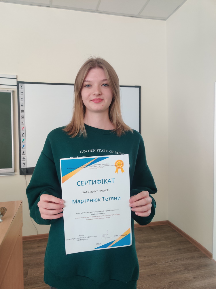 Участь у Всеукраїнській студентсько-учнівській науково-практичній онлайн конференціі «Сучасна гуманітарна наука в інтерпретації молодих дослідників в умовах викликів воєнного стану»
