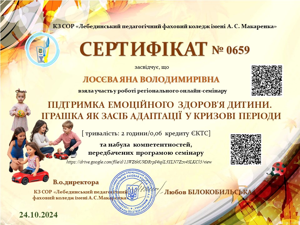 Регіональний онлайн-семінар «Підтримка емоційного здоров'я дитини. Іграшка як засіб адаптації у кризові періоди»