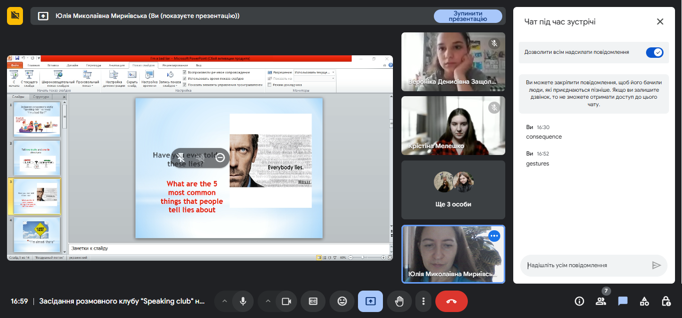 Засідання розмовного клубу "Speaking club" на тему "I'm a bad liar!"