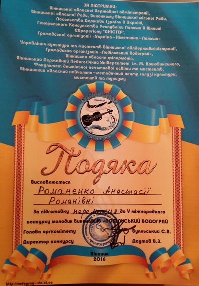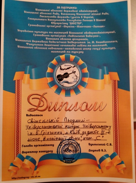 Вітаємо Світельську Людмилу з перемогою на V Міжнародному конкурсі молодих виконавців «Подільський водограй»!