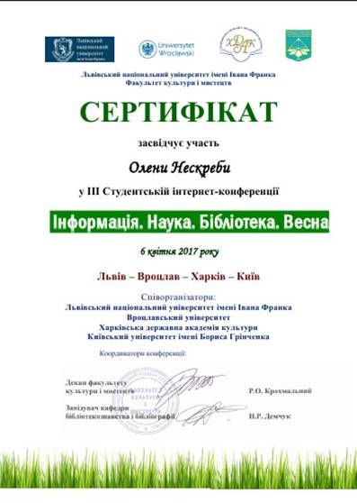 ІІІ Студентська інтернет-конференція на тему «Інформація. Наука. Бібліотека. Весна»