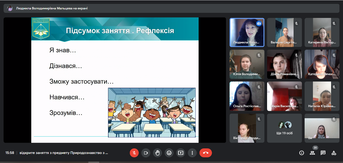 Відкрите заняття викладача Мальцевої Л.В. з навчальної дисципліни «Природознавство з методикою навчання»