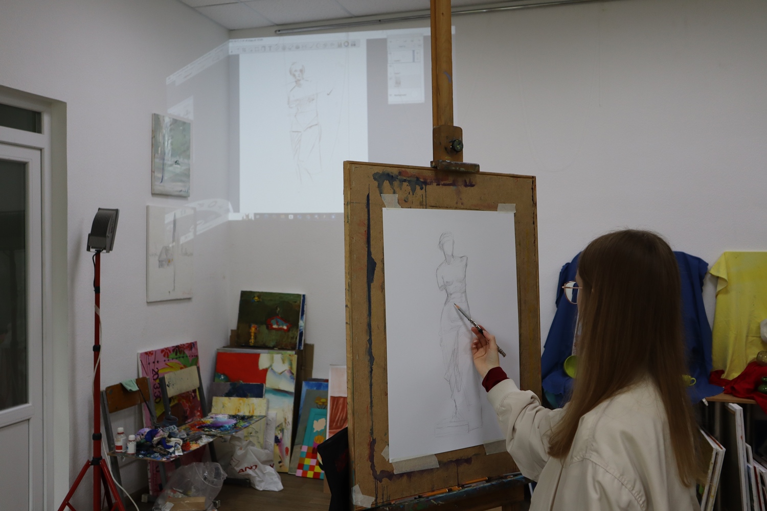 Під час заняття викладач продемонстрував послідовність виконання академічного рисунку, акцентував увагу на пропорціях, об’ємно-просторовій побудові та анатомічній структурі людського тіла.