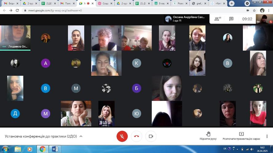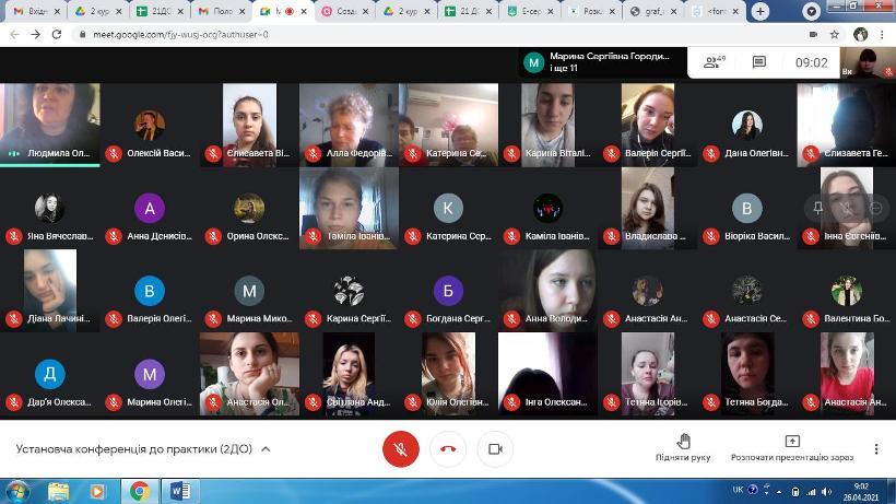 Під час настановної конференції студентів ознайомили з особливостями проходження практики в дистанційному форматі,планування і здійснення освітньої роботи в дистанційному режимі з іншими вихователями та спеціалістами установи, ведення документації, планування корекційно-розвиваючої роботи з дітьми дошкільного віку тощо.