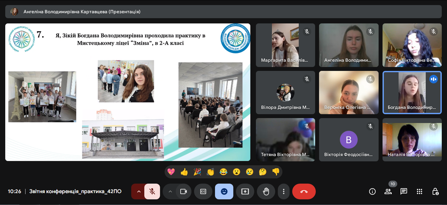 У період з 17 лютого по 24 березня 2025 року студенти 4 курсу спеціальності «Початкова освіта» груп ПОфмб-1-21-4.0д та ПОфмб-2-21-4.0д проходили виробничу (методичну) безперервну практику в закладах загальної середньої освіти. Під час практики студенти успішно закріпили та поглибили знання, здобуті в коледжі, а також удосконалили професійну підготовку як майбутні вчителі початкових класів. Вони мали можливість брати участь у навчальному процесі, розробляли та проводили уроки, активно використовуючи сучасні цифрові інструменти й платформи для інтерактивної взаємодії з учнями. Студенти продемонстрували вміння творчо підходити до викладання, застосовували інноваційні методи навчання, адаптували навчальний матеріал до індивідуальних потреб школярів, впроваджували диференційований підхід і методи проєктного навчання. Практика сприяла глибшому розумінню реалій сучасного освітнього процесу, розвитку педагогічних здібностей і формуванню актуальних фахових компетентностей, необхідних для ефективної роботи вчителя початкової школи. Вона стала важливим етапом професійного зростання, дозволивши студентам відчути себе впевнено у своїй майбутній професії.