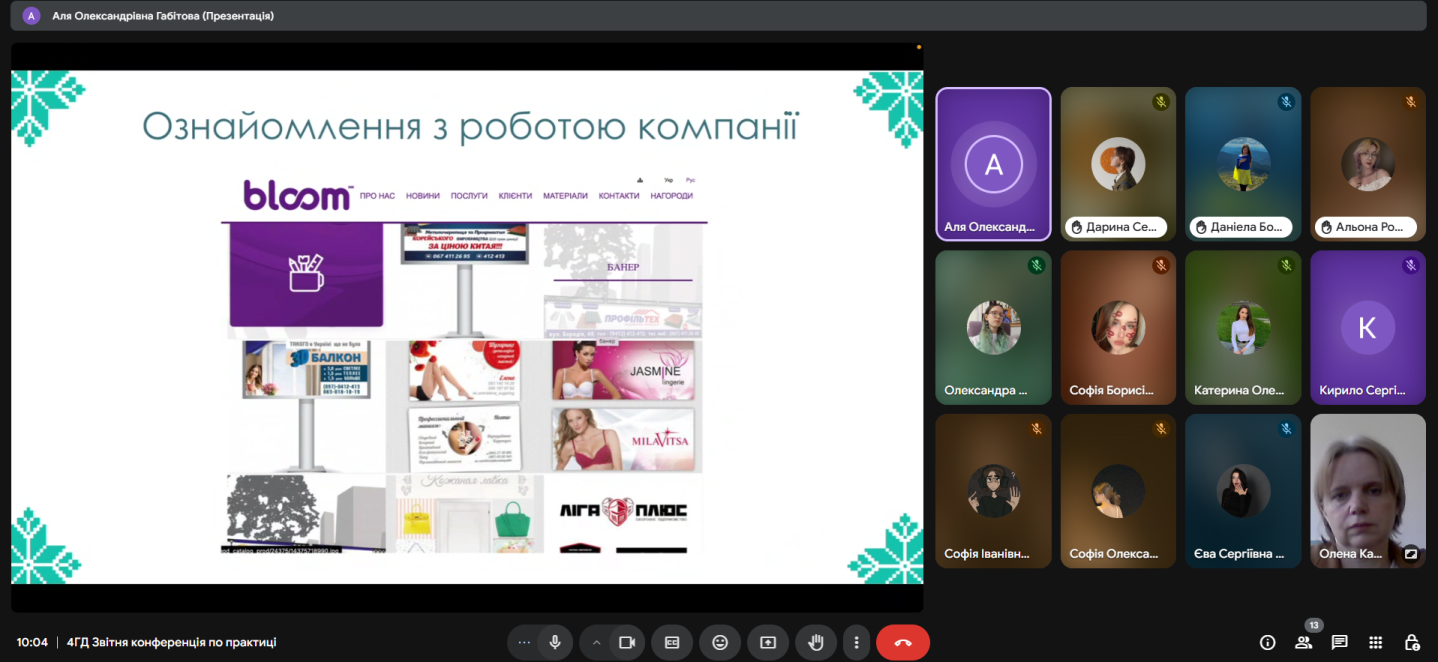 На звітній конференції студенти презентували свої роботи, виконані під час практики. Комісія відзначила роботи Бондаренко Катерини, Паламарчук Дарини, Тридуб Даніели та Шпак Олександри.