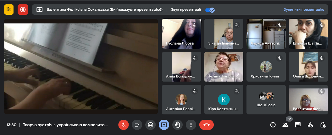 Композиторка розповіла присутнім про основні віхи творчого життя, ознайомила присутніх зі своїм авторським доробком, продемонструвала велику кількість музичних інструментальних творів, ансамблів, презентувала авторські музичні збірки.