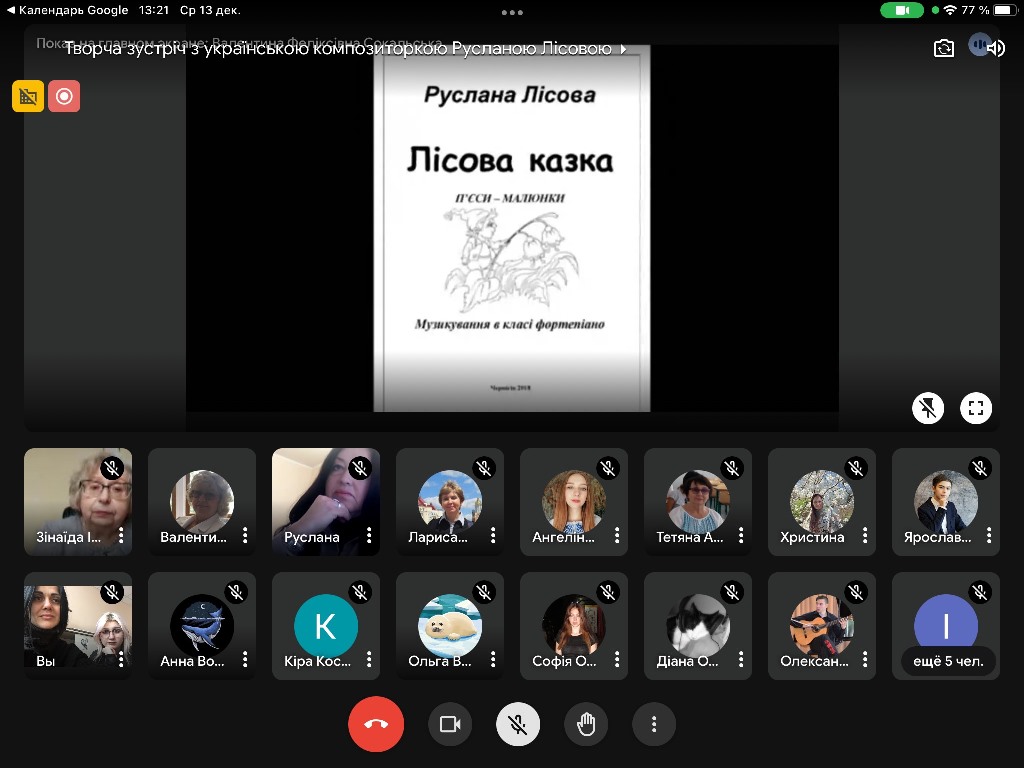 13.12.2023 року в межах Клубу «Людина професії» відбулася творча зустріч студентів спеціальності «Музичне мистецтво» з відомою українською композиторкою, членом музичної спілки імені Анатолія Авдієвського, членом Національної спілки кобзарів України, музичним редактором журналу «Музична школа» Русланою Лісовою.