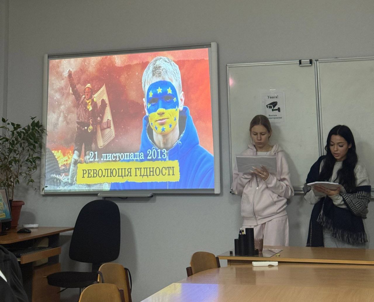 Студенти також згадали події Помаранчевої революції та Революції Гідності, які стали переломними моментами новітньої історії України. Під час кураторської години студенти переглянули тематичні відеоматеріали, виконали творче завдання про значення національної пам’яті та поділилися власними думками про те, що для них означають поняття “гідність”, “свобода” і “незламність”. Особливий акцент зробили на важливості патріотизму, людяності й відповідальності кожного громадянина.