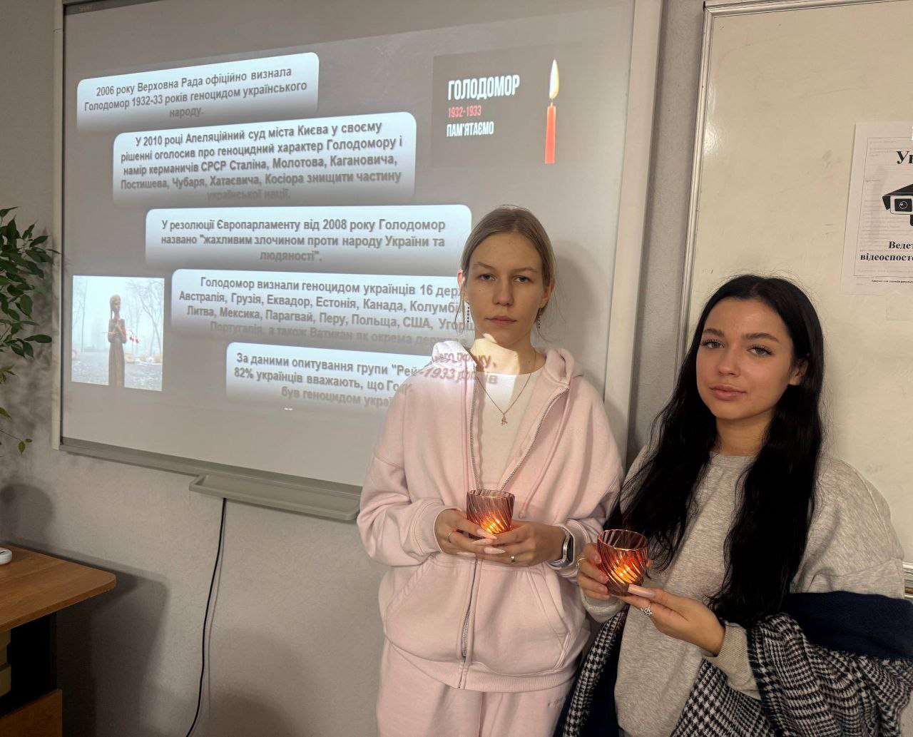 Студенти пригадали трагічні події 1932–1933 років — Голодомор, один з найстрашніших злочинів тоталітарного режиму. Обговорили причини геноциду, його наслідки для українського суспільства, а також важливість збереження історичної правди. Особливу увагу приділили темі родинної пам’яті, свідченням очевидців і символу запаленої свічки, яка нагадує, що кожне життя має цінність.