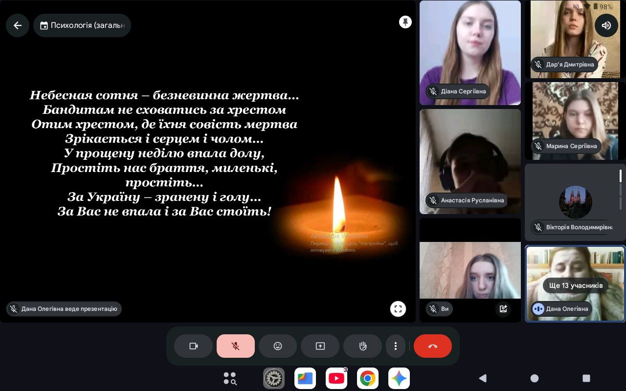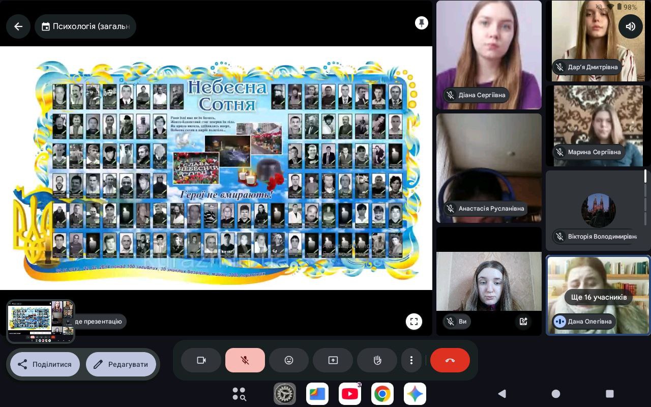 20.02.2026 р. з нагоди вшанування Дня Героїв Небесної Сотні для студентів ІІ курсу групи ДОфмб-1-24-3.Од було проведено виховну годину «Ехо Небесної Сотні в серці кожного». Захід мав на меті ретроспективний огляд подій Революції Гідності та виховання почуття патріотизму у сучасної молоді.