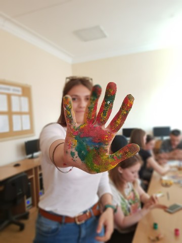 24.05.2019 року в Університетському коледжі Київського університету ім. Бориса Грінченка відбулося засідання з арт-терапії «Інтеграція музики і кольору». Панувала неймовірна, творча атмосфера, де студенти мали можливість виразити власні емоції та почуття, дізнатись особливості свого характеру, створити композиції «Пальчикового живопису», монотипії, кляксографії.