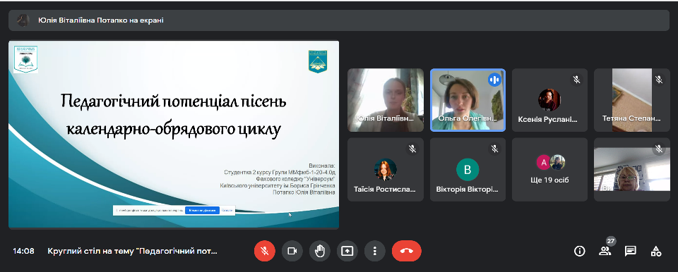 Засідання наукового гуртка "Консонанс" на тему "Педагогічний потенціал пісень календарно-обрядового циклу. Веснянки"