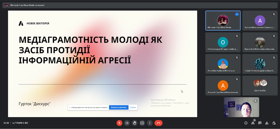 31 жовтня 2022 року відбулося засідання наукового гуртка з журналістики «Дискурс» на тему «Значення медіаграмотності в інформаційному суспільстві».