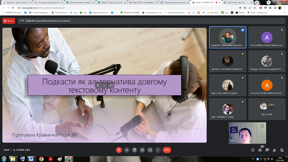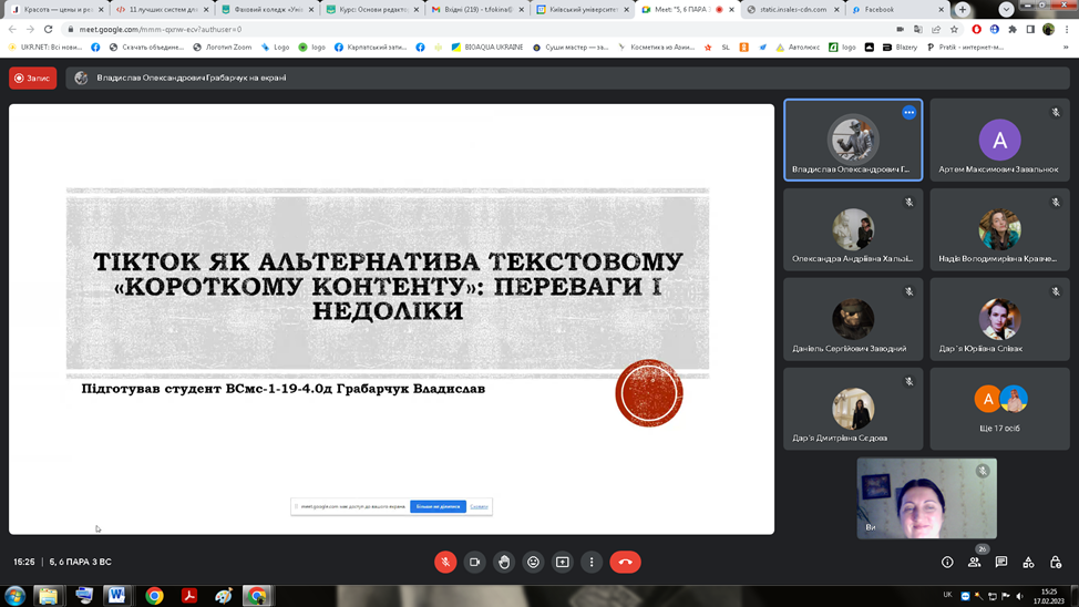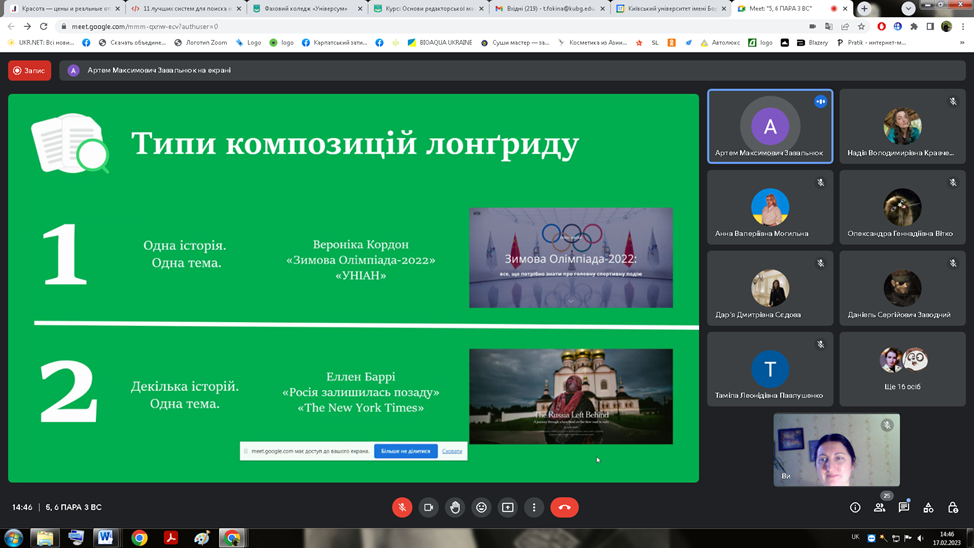 17 лютого 2023 року відбулося засідання наукового гуртка з журналістики «Дискурс» на тему «Формат лонґріду та шортриду в інтернетмедіа».