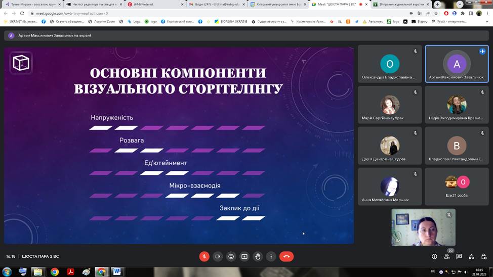 21 квітня 2023 року відбулося засідання наукового гуртка журналістики «Дискурс» на тему «Сторителінг у роботі журналістів».