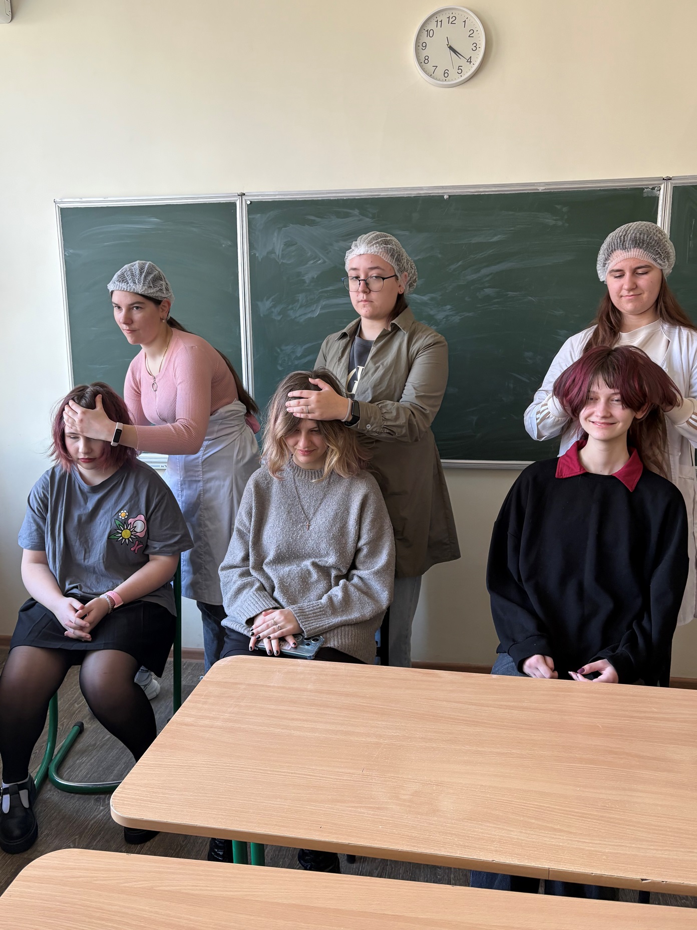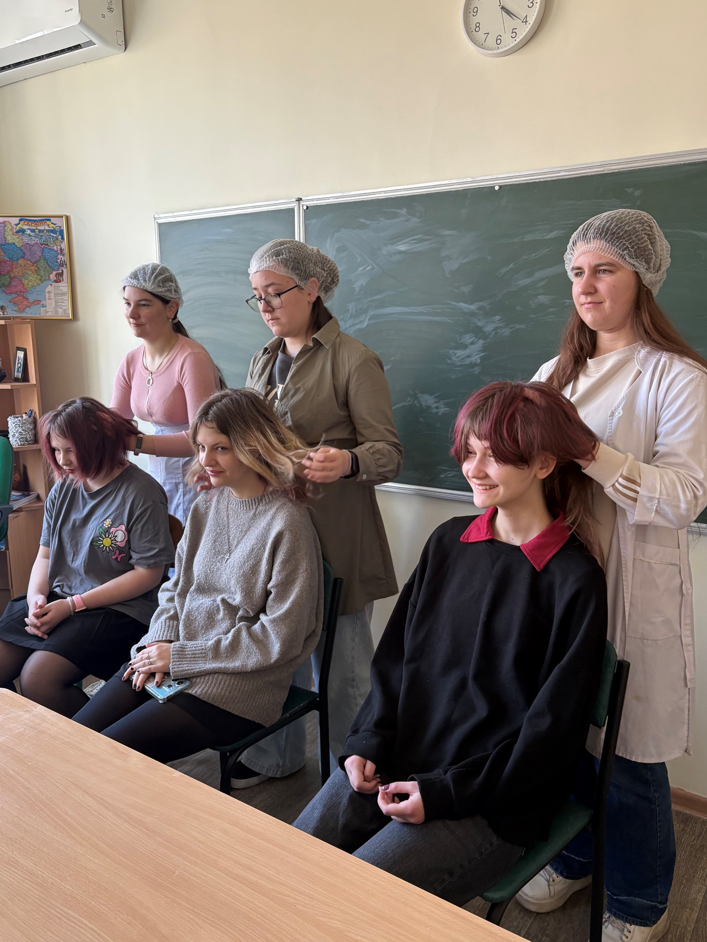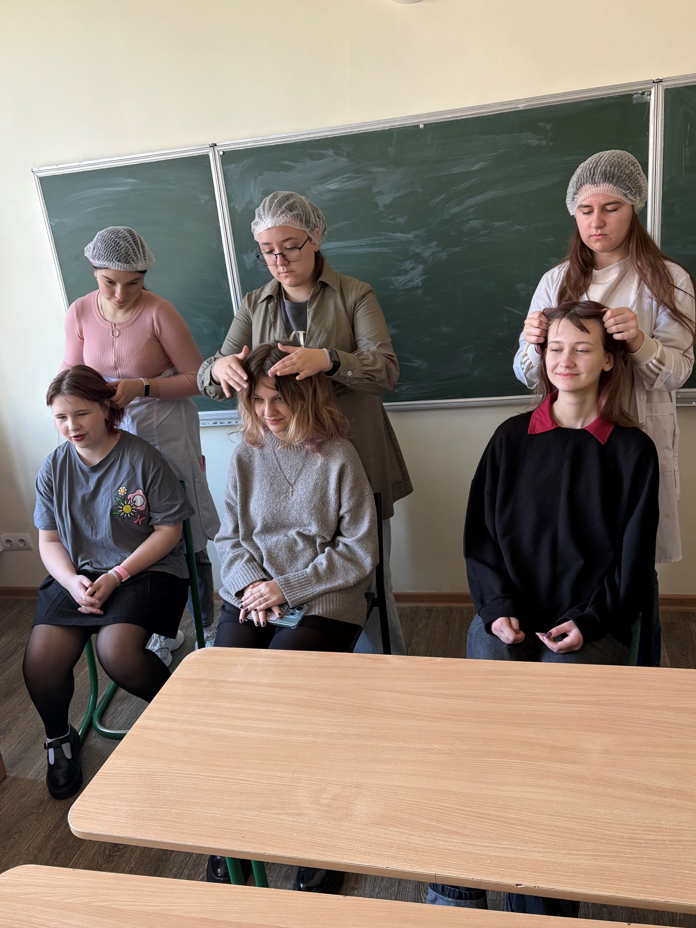 На занятті учасники засідання ознайомилися з основами догляду за волоссям і шкірою голови та вивчили техніки масажу. Було розглянуто основні прийоми та особливості дотримання гігієнічних вимог.