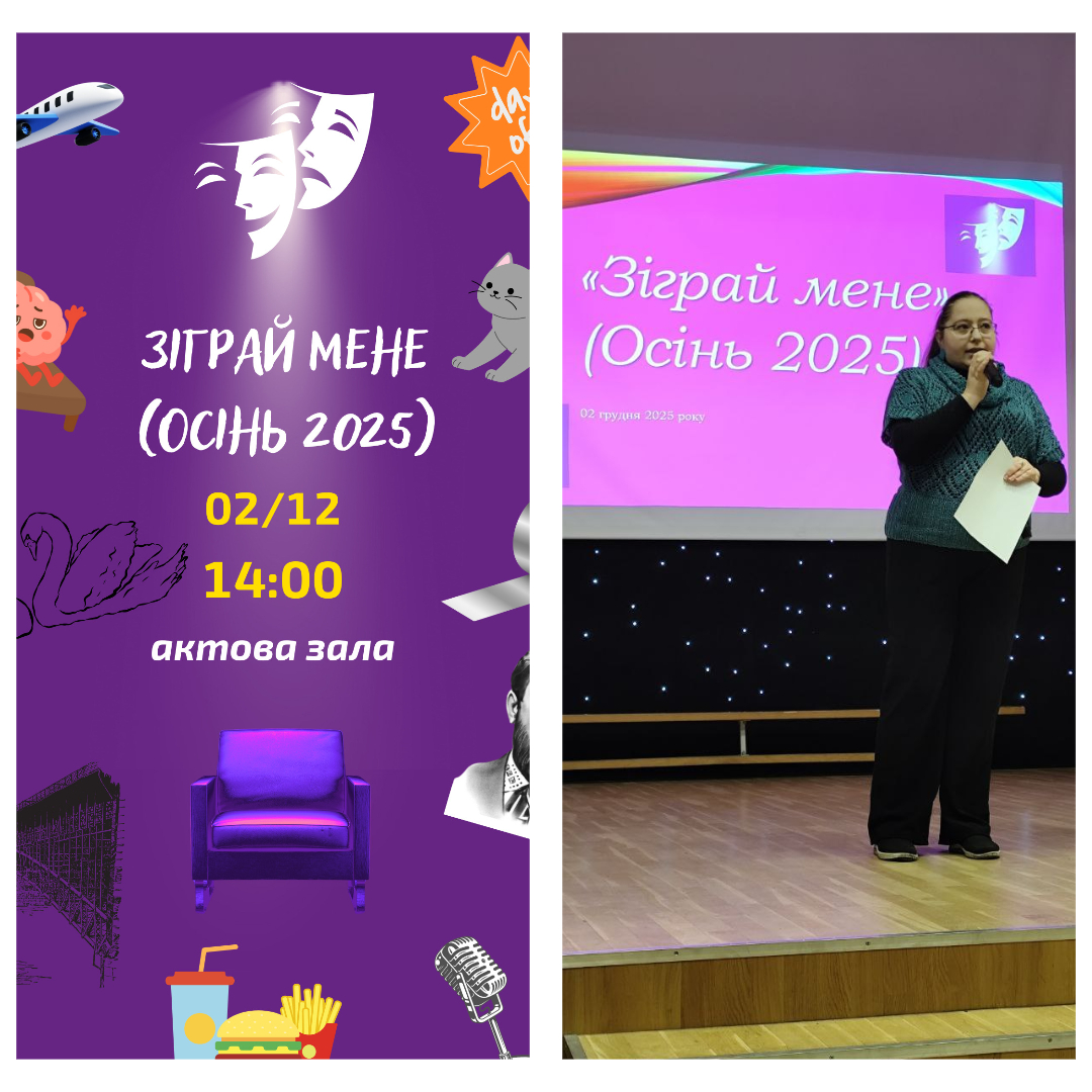 02 грудня 2025 року відбувся вже традиційний захід "Зіграй мене (Осінь 2025)". Учасники театрального гуртка коледжу представили власні етюди-інтерпретації улюблених українських пісень. У виступі взяли участь Мартіна Кучун, Анастасія Диптан, Марія Науменко, Софія Онопрієнко та Кірілл Ковальов.