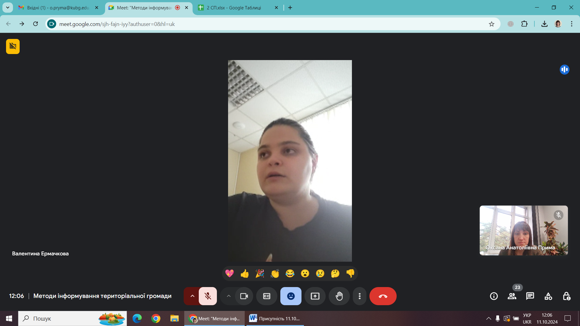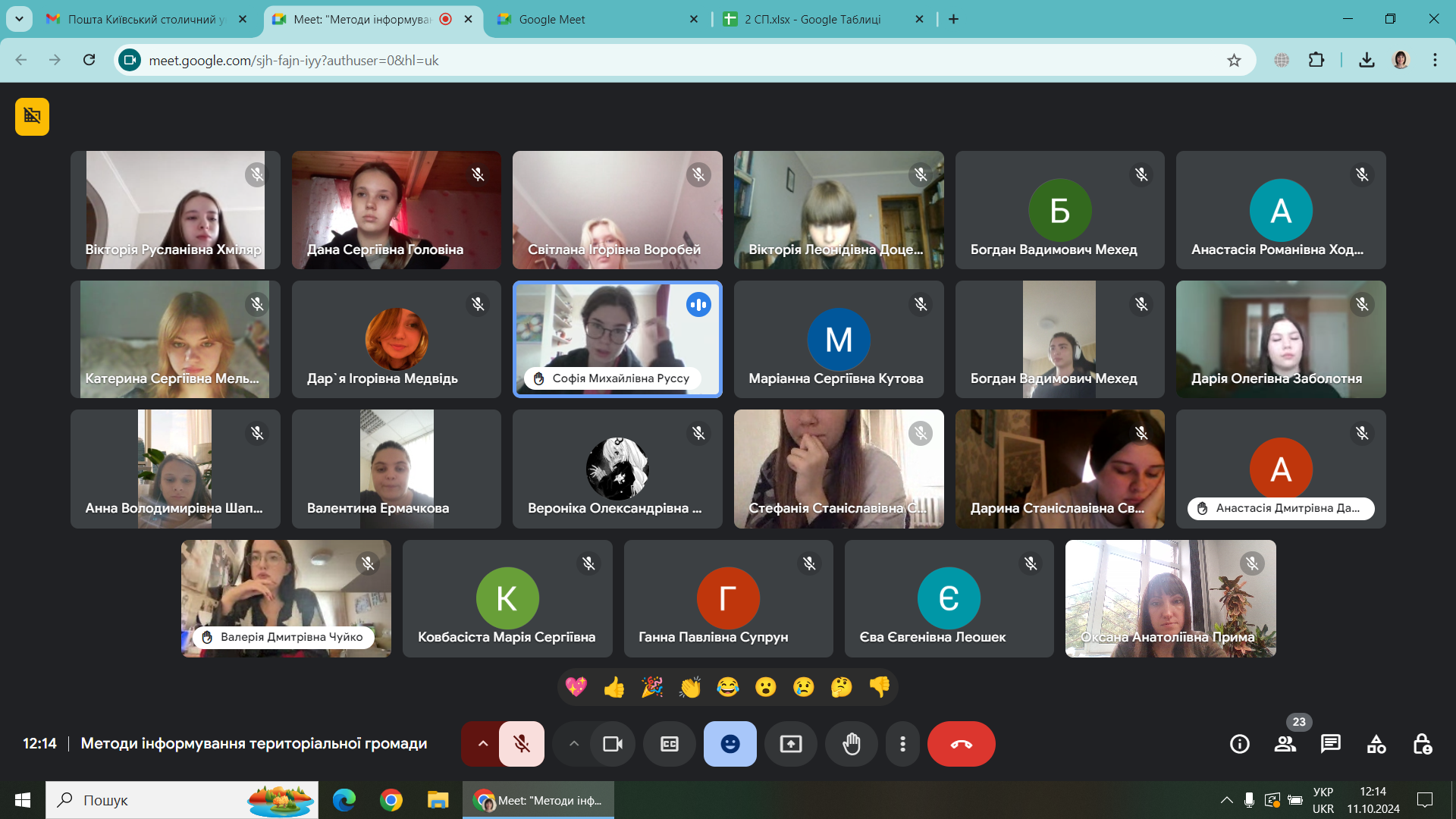 11.10.2024 року для студентів ІІ курсу спеціальності «Соціальна педагогіка» була організована онлайн-зустріч на тему «Методи інформування територіальної громади». Спікером стала Валентина Юріївна Єрмачкова — член Ради роботодавців, провідний фахівець із соціальної роботи Київського міського центру соціальних служб.