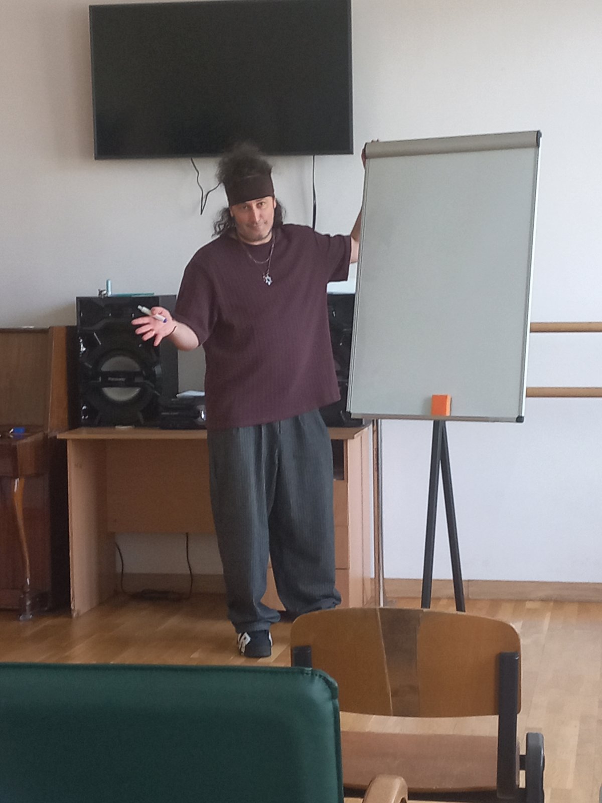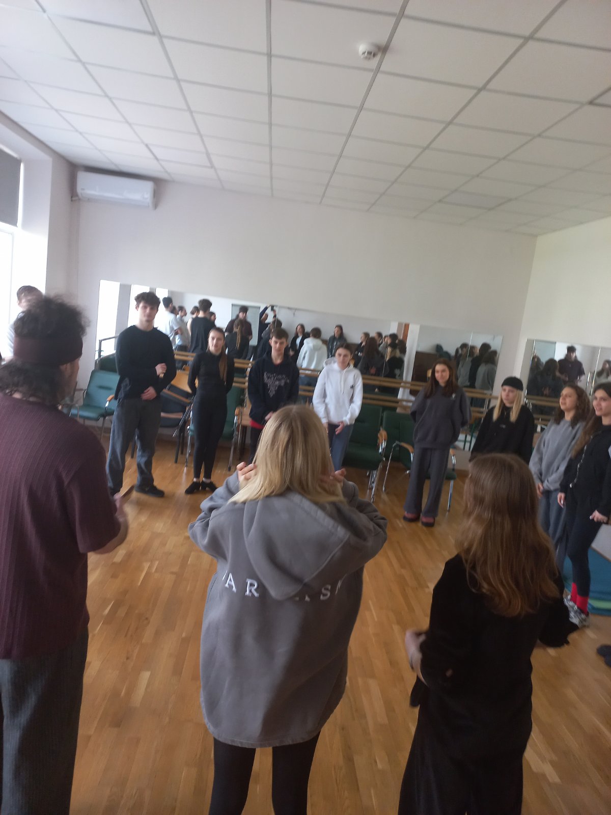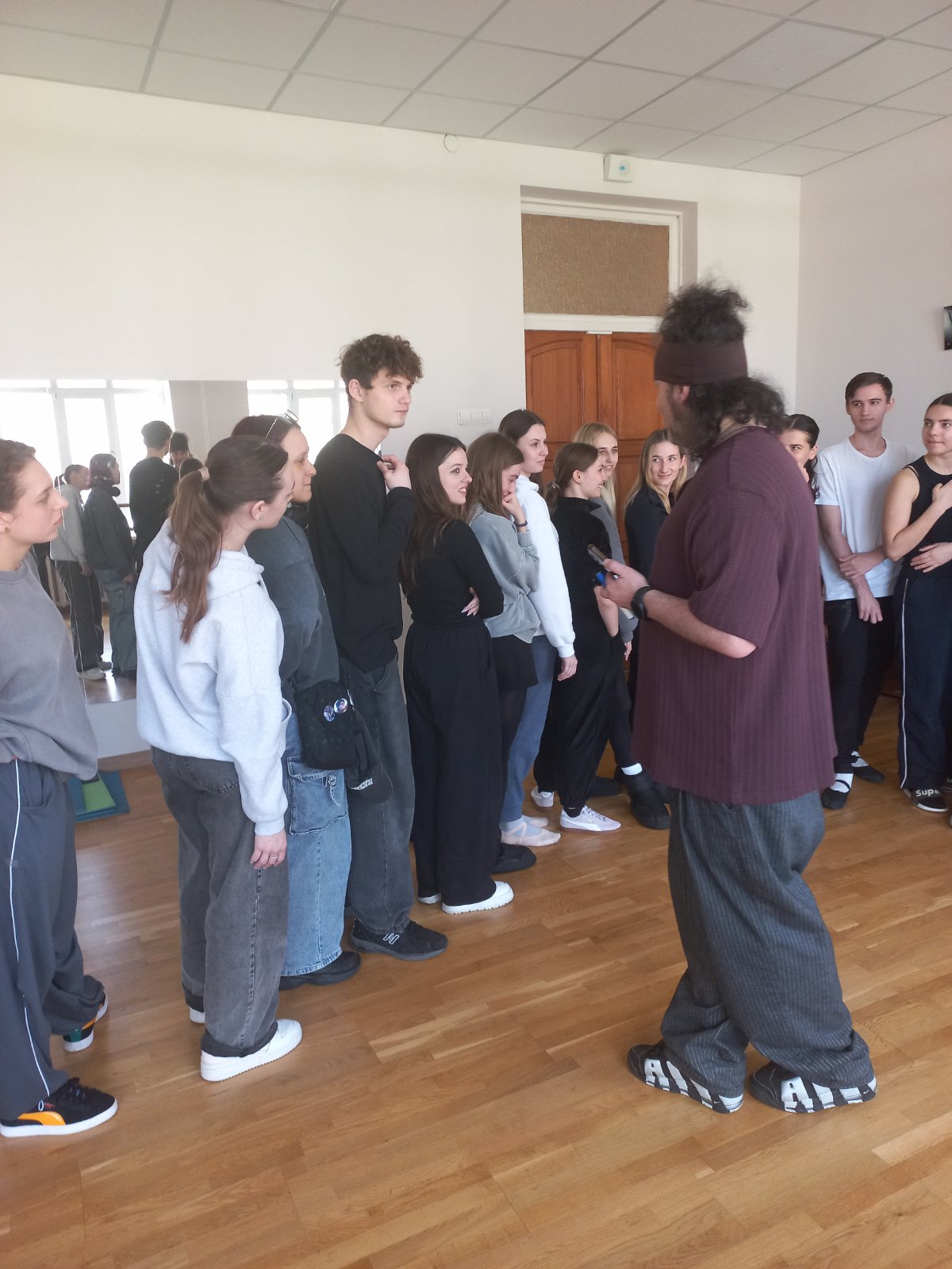 03.04.2025 р. для студентів спеціальності «Хореографія» Фахового коледжу «Універсум» Київського столичного університету імені Бориса Грінченка був проведений практичний семінар на тему: «Значення ігрових моментів у ментальному здоров'ї особистості» за участю члена Ради роботодавців, засновника і керівника мережі танцювальних центрів України «All Stars Dc» Олександра Секіріна.