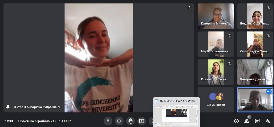 22 лютого 2022 року відбулася онлайн-зустріч студентів 2 і 4 курсів спеціальності “Хореографія” з членом Ради випускників Фахового коледжу «Універсум» Вікторією Купреішвілі та випускницями Коледжу Ксенією Клочек і Олександрою Лещенко. Гості розповіли про своє подальше навчання в Київському університеті імені Бориса Грінченка.