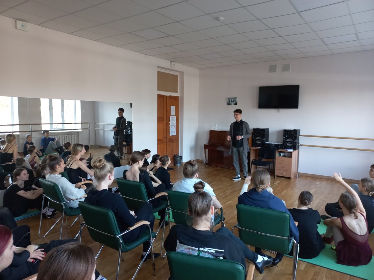 15 листопада 2023 року у Фаховому коледжі «Універсум» для студентів спеціальності «Хореографія» відбулася гостьова лекція члена Ради випускників Ніколаєнко Дмитра на тему «Професійна компетентність як освітній результат підготовки хореографа».