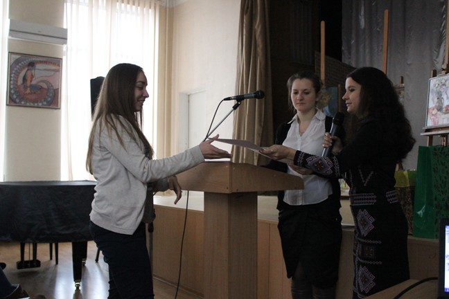 Переможці отримали подарунки від директора галереї «Коло» О.М.Старшинової. Картини призерів конкурсу будуть продані на аукціоні, метою якого є збір коштів на потреби бійців АТО.
