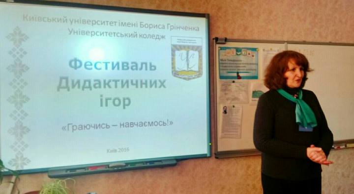 22 березня 2016 в Університетському коледжі Київського університету імені Бориса Грінченка пройшов "Фестиваль дидактичних ігор" під гаслом "Граючись - навчаємось". Студенти ІІІ-го курсу спеціальності "Початкова освіта" презентували свої надбання з методики навчання математики у створенні власних дидактичних ігор, більшість з яких були використані на пробних уроках навчальної практики. Майбутні педагоги з задоволенням ділились власним досвідом з гостями фестивалю. Модератор фестивалю: Мащакевич Л.А.