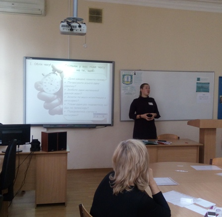 Слухачі під час тренінгів ознайомилися з основними поняттями тайм-менеджменту; інформацією про процес планування, його види та методики; вчилися планувати свій робочий та вільний час з використанням різних методик та інформаційно-комунікаційних технологій.