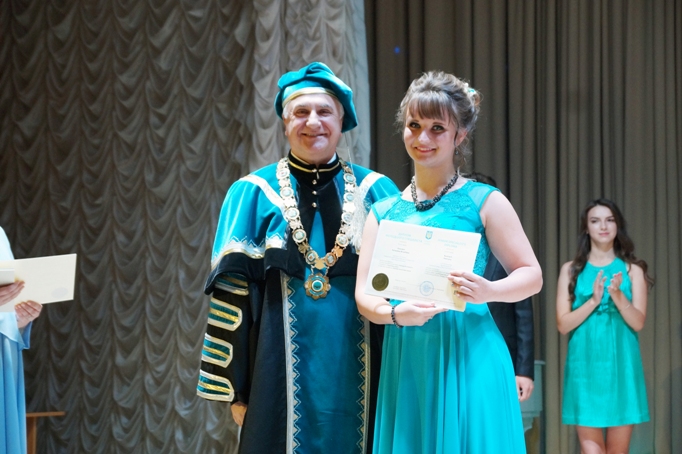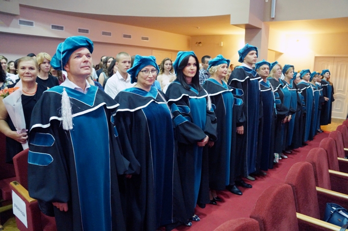 Випускників привітала Вчена Рада Університету. З цінними та важливими настановами до випускників та гостей свята звернувся доктор філософських наук, професор, академік Національної академії педагогічних наук України, ректор Університету Віктор Олександрович Огнев`юк.