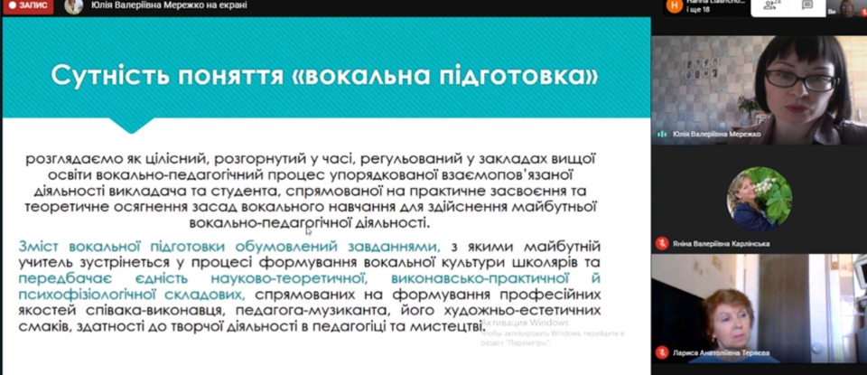 У своїй лекції Юлія Валеріївна надала розгорнуті відповіді на запитання: «Що характеризує вокально підготовленого вчителя музичного мистецтва?» , «Як формувати музичний інтелект студентів?» та інші.