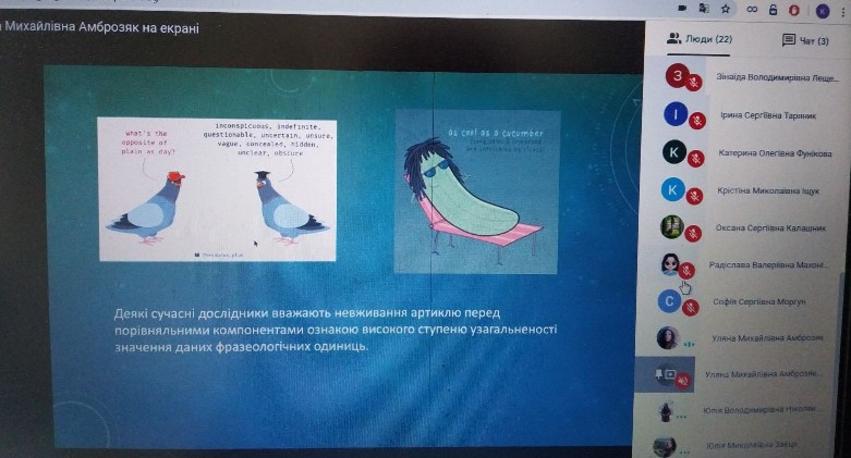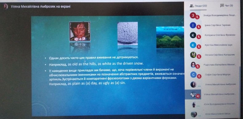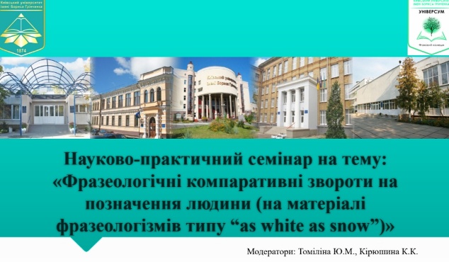 21.05.2020 р. в рамках Фестивалю науки було проведено науково-практичний семінар на тему: "Фразеологічні компаративні звороти на позначення людини (на матеріалі фразеологізмів типу "as white as snow").