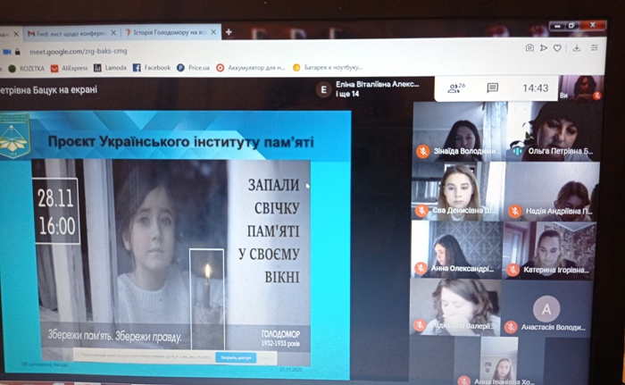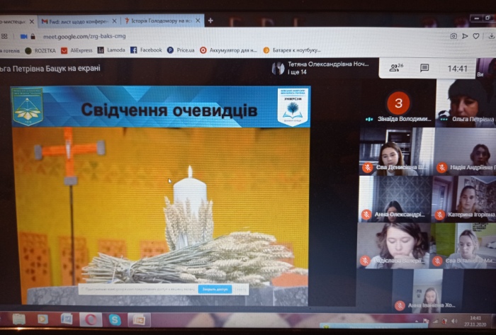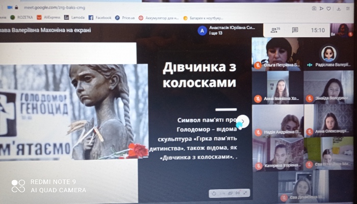 27.11.2020 до Дня вшанування пам'яті жертв Голодомору був проведений історично-мистецький проєкт "Історія Голодомору в символах та пам'ятних знаках" для студентів спеціальності" Початкова освіта". Студенти аналізували причини, суть та наслідки голодомору через призму свідчень очевидців та ознайомилися з пам'ятними знаками та символами трагічних сторінок української історії в творах мистецтва.