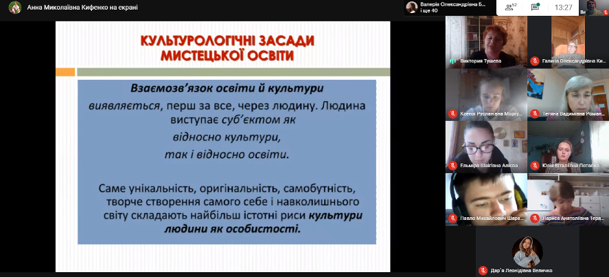 3 грудня 2020 року відбулася гостьова лекція доктора педагогічних наук, професора кафедри теорії і методики мистецької освіти Харківського національного педагогічного університету імені Г. Сковороди Тушевої В.В. на тему «Культурологічні засади мистецької освіти».