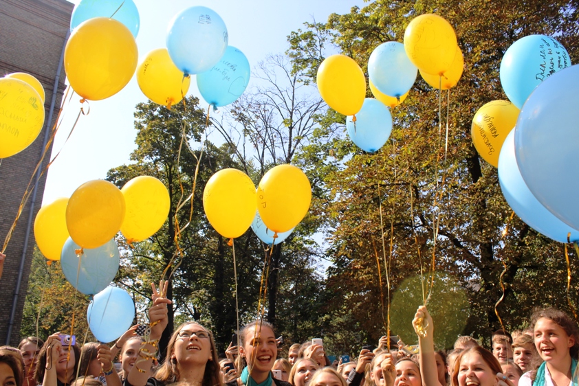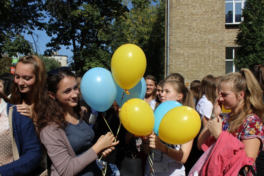 Під час великої перерви першокурсники стали глядачами танцювального флешмобу, який для них підготували студенти-другокурсники різних спеціальностей. Учасники флешмобу та глядачі випустили у небо жовто-блакитні кульки, на яких написали найзаповітніші бажання. Захід мав продемонструвати єдність першокурсників зі студентами та викладачами Університетського коледжу, з усією грінченківською родиною та рідною Україною. Студенти найчастіше писали про мир і спокій в Україні, особисті мрії і свої подальші плани в Університетському коледжі Київського університету імені Бориса Грінченка.