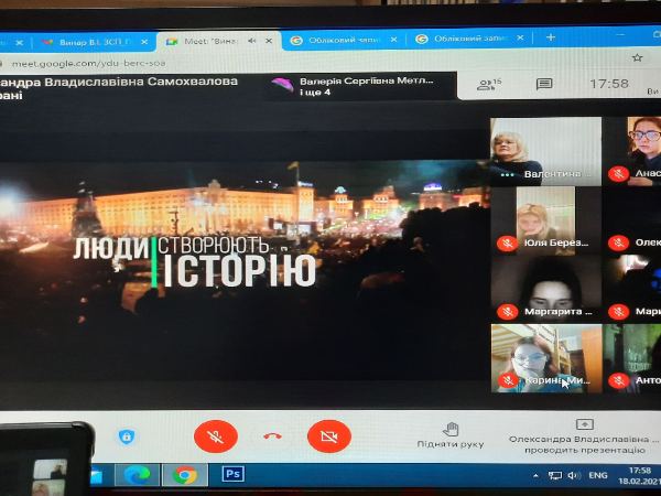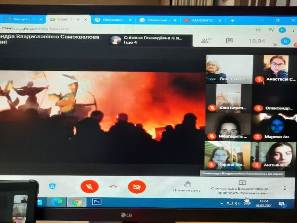 18 лютого 2021 року зі студентами третього курсу Фахового коледжу «Універсум» Київського університету імені Бориса Грінченка спеціальності "Соціальна педагогіка", разом з куратором Винар В.І. було проведено Годину пам’яті до вшанування Дня Героїв Небесної Сотні: «Небесна Сотня. Люди творять історію».